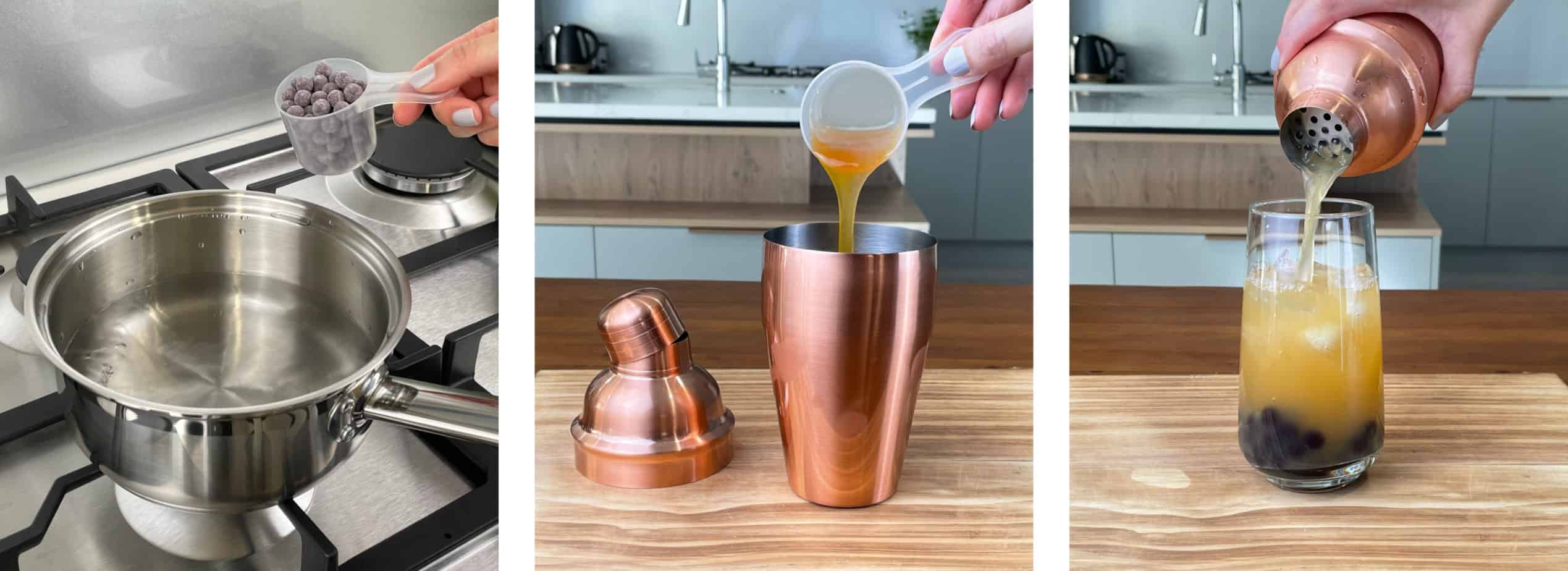 We have created a range of delicious NZ-made bubble tea kits that are available from our on-line store. Our kits come in a range of flavours and can be paired with traditional brown tapioca pearls, or chewy tapioca fruit pearls (that we manufacture ourselves!). We also offer stainless steel cocktail shakers and reusable bamboo & stainless steel bubble tea straws that will have you creating bubble teas like a Pro in no time.