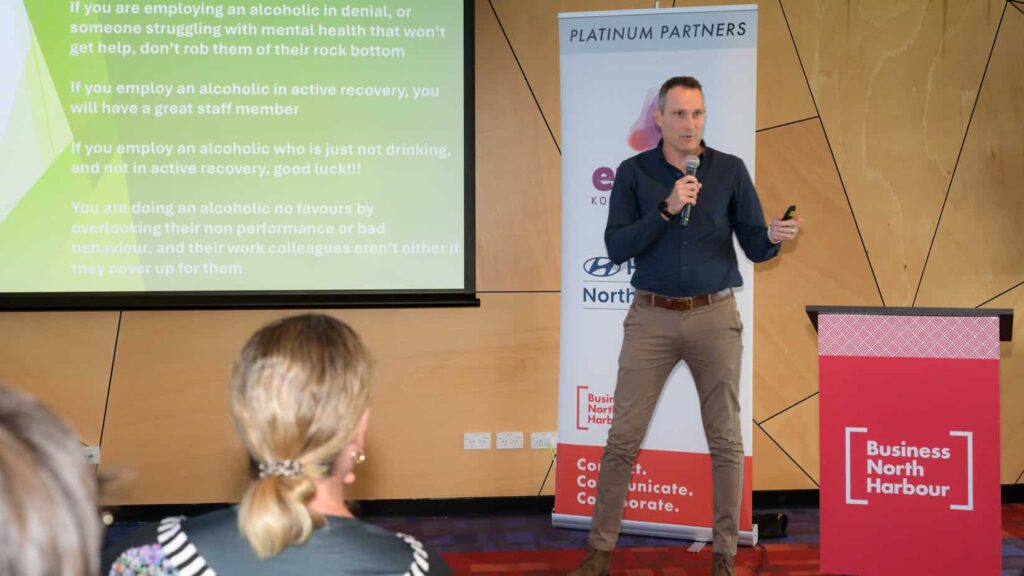 During the panel discussion, Lance and Simon shared their lived experiences before hearing attendees’ questions and comments. These primarily focused on how New Zealand businesses can help to make it more acceptable to talk about and proactively deal with alcoholism.